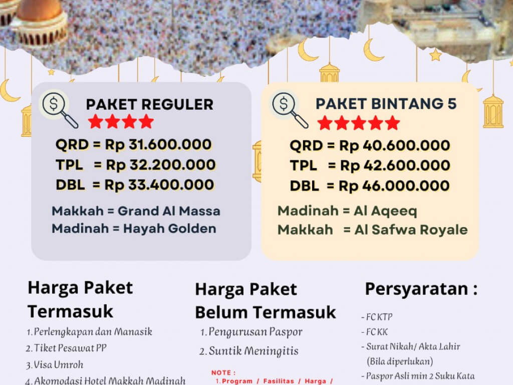 Umrah Reguler 9 day *4 -PT Sahara Dzumirra